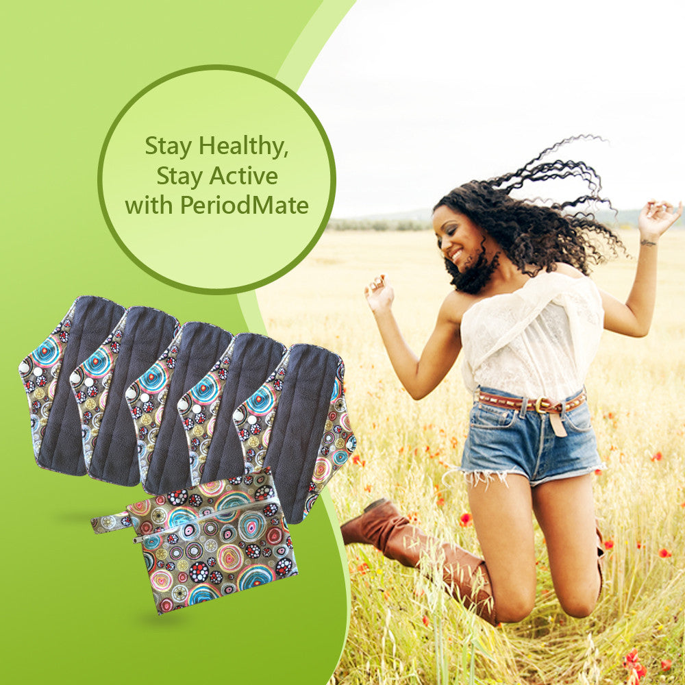 Period Mate Mama Cloths for Medium to heavy Flow with a Bonus Wet bag ( 6 pieces) Carnival